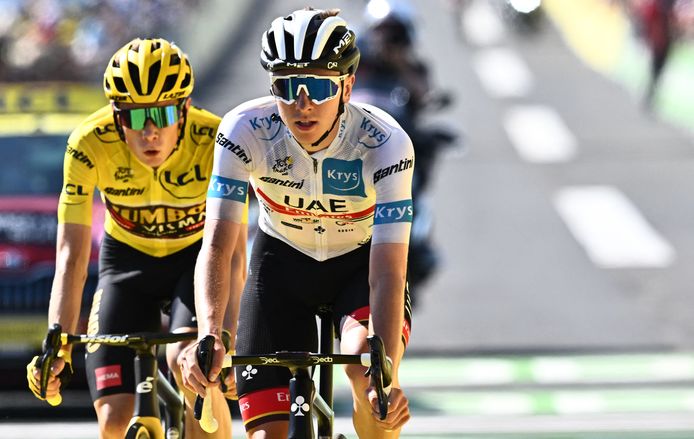 Een onverwachte inzinking bezorgde Tadej Pogacar in de Bout de French republic fors tijdverlies. De ongenaakbaar geachte Sloveen, de afgelopen twee jaar winnaar, moest op de slotklim van de elfde etappe bijna 3 minuten toegeven op Jonas Vingegaard. De Deen van Jumbo-Visma nam hem meteen ook de gele trui af. -
